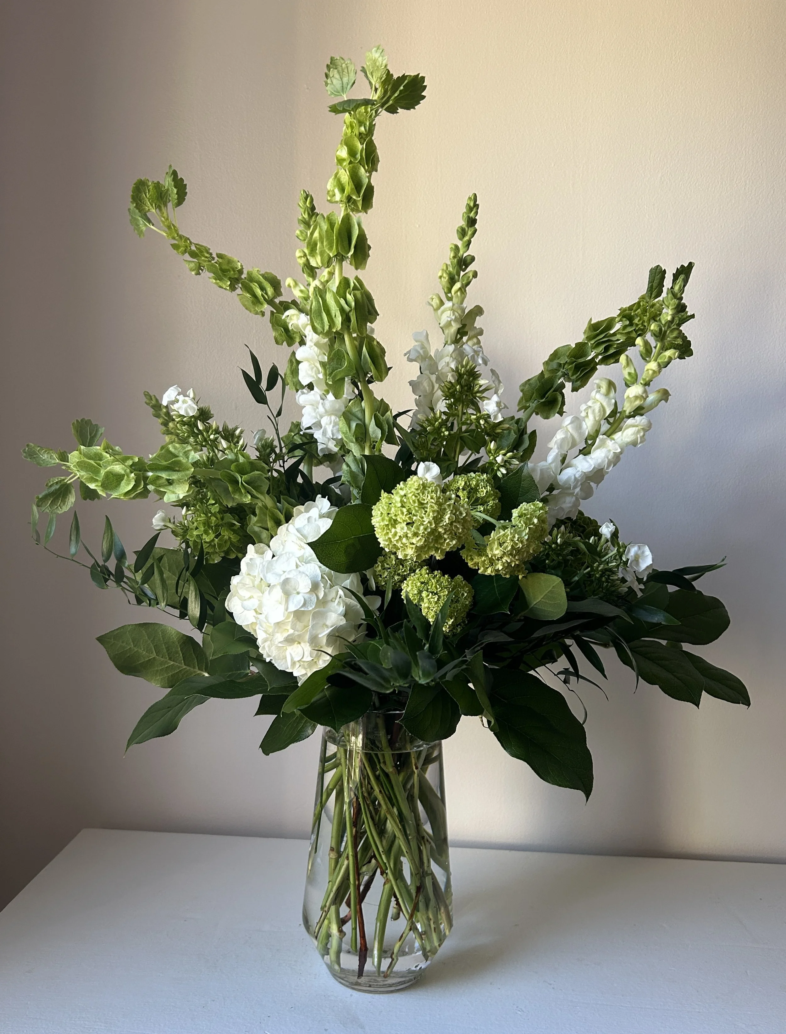 Shown: Designer’s Choice Arrangement with Whites and Greens, $150 (small)